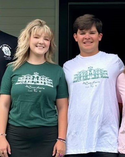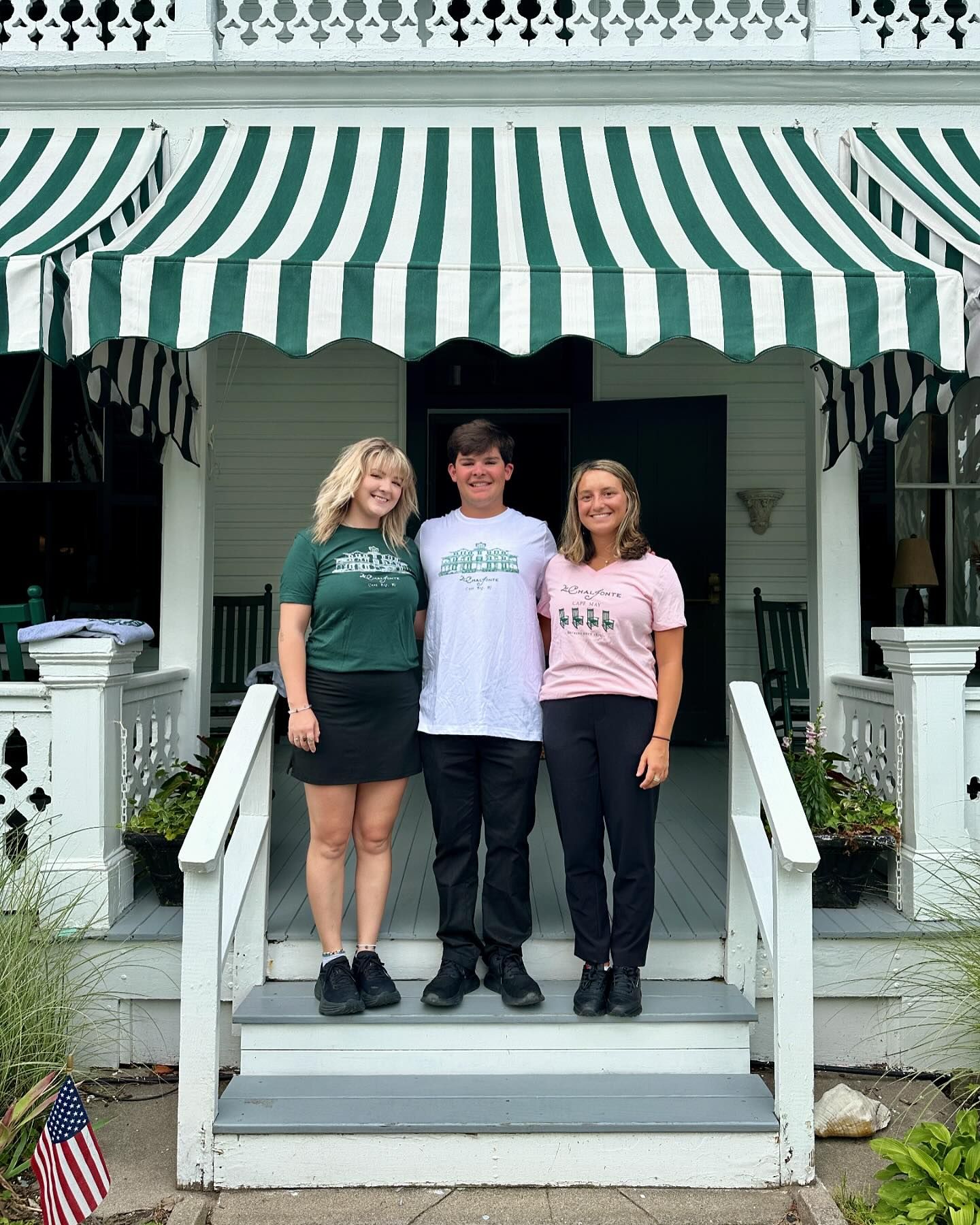 Short Sleeve t-shirt featuring a line drawing of The Chalfonte Hotel on the front. Available in white, kelly green and forest green